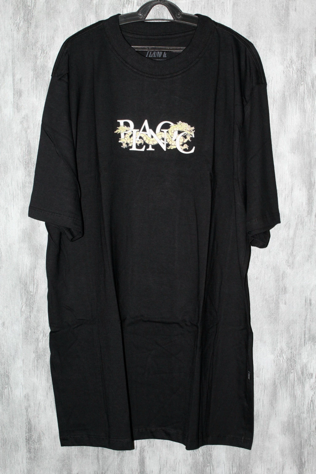 Modelagem com caimento reto, gola careca em ribana 2x1 e reforço interno nos ombros. Estampa aplicada no lado esquerdo do peito e nas costas.